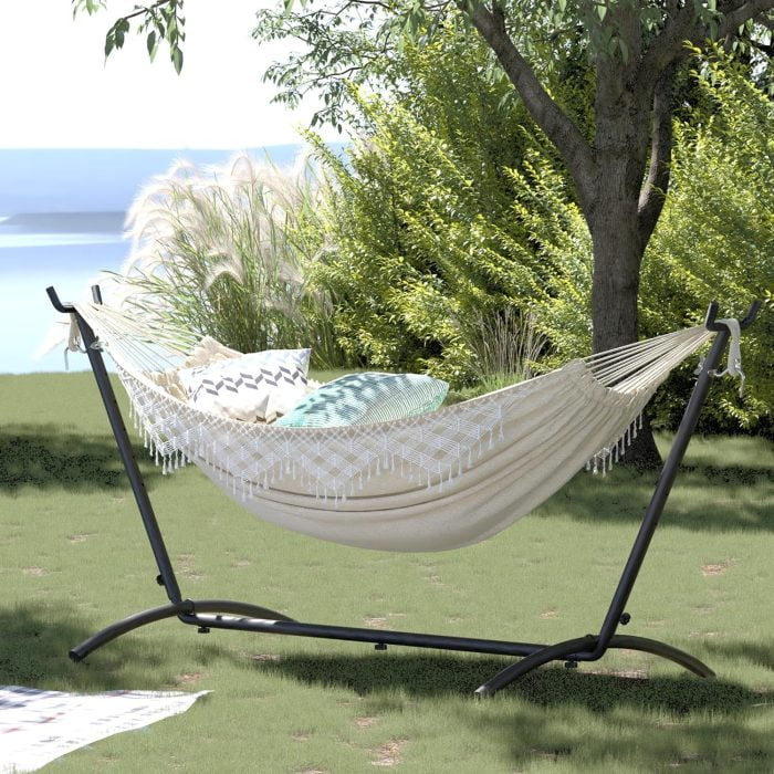 Bohemian Style Portable Double Hammock with Metal Stand for 2 People