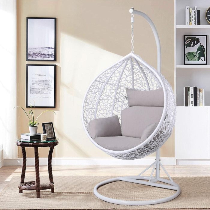 Garden Swing Chair with Stand – Outdoor/Indoor Rattan Hanging Hammock, White