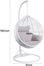 Sink into comfort with the included plush cushions, tailored to enhance your relaxation. The egg-shaped design provides ample space, while the stylish white hue complements any decor. Ideal for adding a touch of elegance to your garden, patio, or living room.